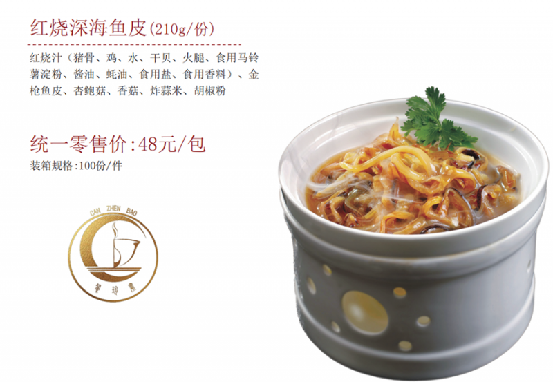 紅燒深海魚皮(210g/份) 紅燒汁(豬骨、雞、水、干貝、火腿、食用馬鈴 薯淀粉、醬油、蠔油、食用鹽、食用香料)、金 槍魚皮、杏鮑菇、香菇、炸蒜米、胡椒粉 統(tǒng)一零售價(jià):48元/包 裝箱規(guī)格:100份/件 共0條 相關(guān)評論 |
