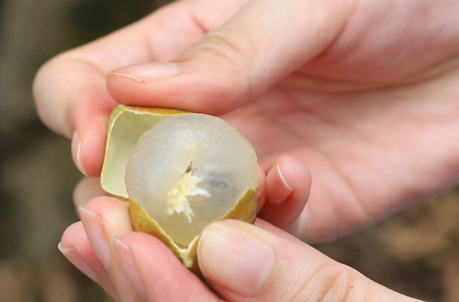 這個(gè)雜交品種究竟是荔枝還是龍眼呢?劉成明解釋道,事實(shí)上,“脆蜜”仍然是一個(gè)龍眼品種,不過(guò)其果肉很嫩,這點(diǎn)與荔枝類似,另外,“脆蜜”果皮的龜裂片很明顯,呈疙瘩狀,這也是荔枝才有的特點(diǎn)。