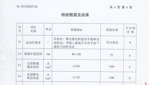 下圖是國(guó)家植保機(jī)械質(zhì)量監(jiān)督檢驗(yàn)中心在2007年時(shí)對(duì)霧星靜電噴霧器正反面吸附效果的檢測(cè)結(jié)果。正面霧滴附著數(shù)量為300個(gè),反面霧滴附著數(shù)量為180個(gè),正反面比例達(dá)到了100:60。