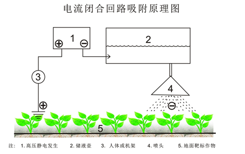一些專家在學(xué)術(shù)上認(rèn)為:根據(jù)靜電感應(yīng)原理,地面上的目標(biāo)作物表面將引起和噴嘴極性相反的電荷,從而實(shí)現(xiàn)靜電噴霧的環(huán)抱吸附效果。