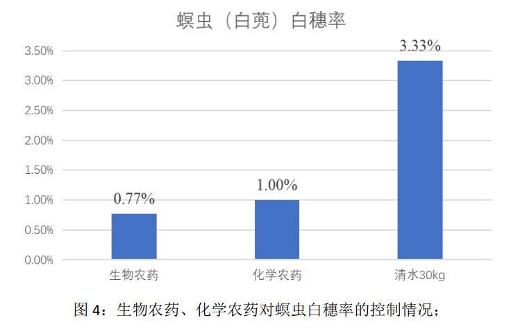 經(jīng)田間蟲情調(diào)查統(tǒng)計, 無論是每次防治產(chǎn)品施入后調(diào)查還是成熟期調(diào)查結(jié)果分析: 處理 A 畝用生物農(nóng)藥制劑 123*100ml 兌水 30kg 均勻噴霧病蟲防治效果