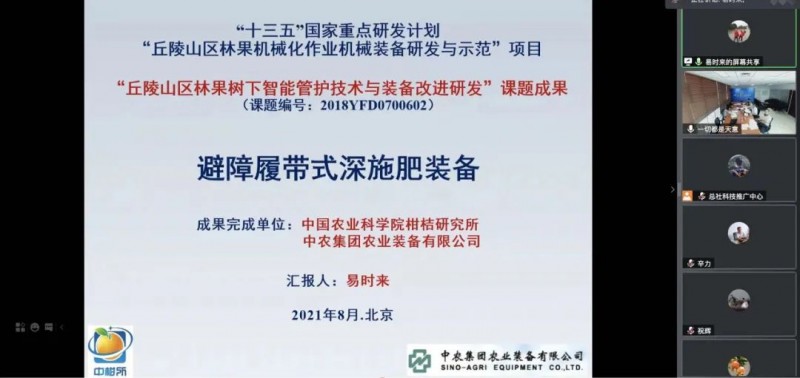 2021年8月,受中國農(nóng)業(yè)科學(xué)院柑桔研究所委托,中華全國供銷合作總社科技推廣中心作為供銷合作系統(tǒng)內(nèi)唯一受總社委托開展科技成果管理相關(guān)工作的機構(gòu),按照科技部《科技成果評價辦法》,本著“科學(xué)、獨立、客觀、公正”的原則,組織七位相關(guān)領(lǐng)域?qū)<乙浴熬€上+線下”形式對“避障履帶式深施肥裝備”成果進(jìn)行了科技成果評價。