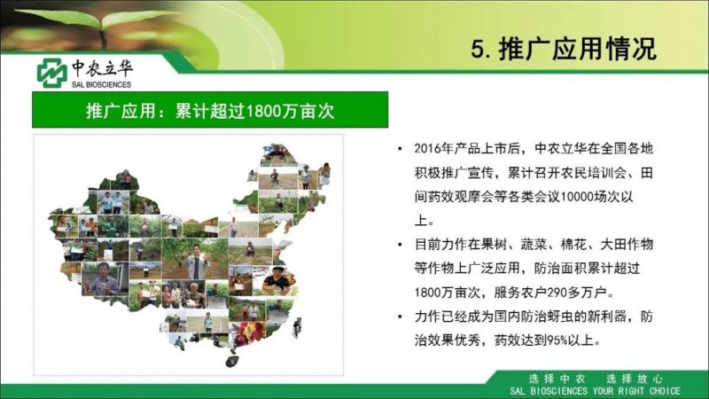 針對高效安全防治蚜蟲產(chǎn)品和技術(shù)缺乏、常規(guī)成分和品種防治效果不穩(wěn)定等問題,成果突破了常規(guī)新煙堿類藥劑防治效率低、抗藥性嚴(yán)重及對蜜蜂等有益生物不安全的制約,研制了高效安全新產(chǎn)品,構(gòu)建了新的應(yīng)用技術(shù)體系,推動了綠色高效安全農(nóng)藥新制劑的創(chuàng)新發(fā)展和新型飛防植保技術(shù)的科技進步。降低了人工及防治成本,促進了農(nóng)藥減量增效,對構(gòu)建綠色高效安全防治蚜蟲的應(yīng)用體系起到了示范作用,得到了市場充分認(rèn)可,體現(xiàn)了較強的市場競爭力。