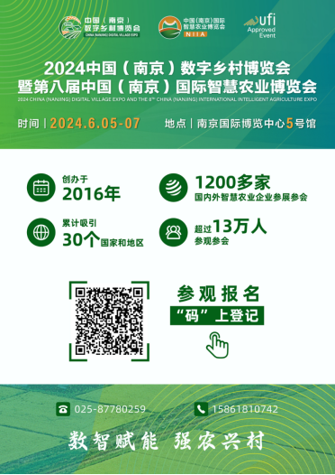 更多行業(yè)熱點(diǎn)資訊和精彩活動(dòng),盡在2024中國(guó)(南京)數(shù)字鄉(xiāng)村博覽會(huì)暨第八屆中國(guó)(南京)國(guó)際智慧農(nóng)業(yè)博覽會(huì)!6月5日至7日,不負(fù)春光,赴“寧”啟航。