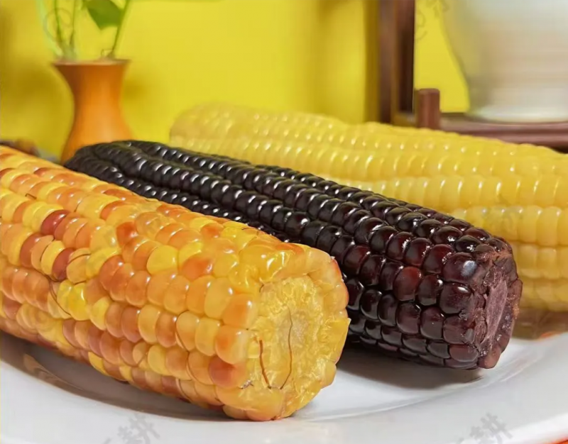 其二是黑甜糯玉米,黑甜糯玉米顆粒緊湊,個(gè)頭偏小,籽粒呈深紫至黑色,籽粒較大且胚乳飽滿,在口感上甜度高于普通黑玉米(可溶性糖含量8-10%),糯中帶甜,口感細(xì)膩有嚼勁,其核心優(yōu)勢(shì)是富含花青素(約58.3mg/kg)與硒元素,與低脂肪、高膳食纖維的特性相結(jié)合,是美膚養(yǎng)生的優(yōu)選良品;同時(shí)花青素能抑制炎癥因子的釋放,減輕慢性炎癥反應(yīng),通過調(diào)節(jié)免疫細(xì)胞功能,增強(qiáng)機(jī)體對(duì)感染性疾病的防御能力,改善亞健康狀態(tài),是一種老少皆宜的優(yōu)選食品。黑甜糯玉米的可做方法也是多種多樣的,例如水煮:將黑甜糯玉米放入沸水中,煮20-25分鐘,撈出瀝干即可食用。水煮后的玉米軟糯香甜,可作為下午茶點(diǎn)心或夜宵。也可做黑玉米甜湯:把黑甜糯玉米剝粒,與銀耳、蓮子、冰糖一起放入鍋中,加適量清水煮至食材軟爛,制成甜湯。