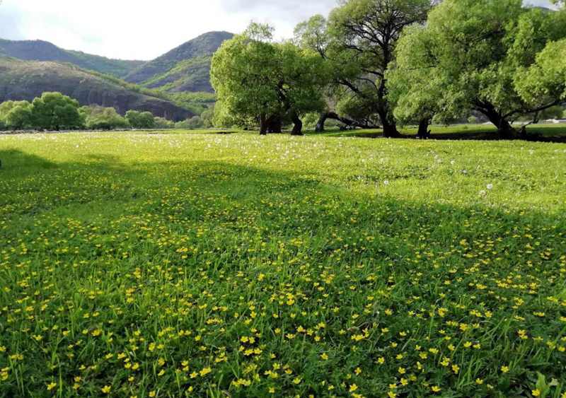 有了水,一切都變得滋潤和活泛起來。河流兩岸生長著挺拔的柞樹、豐潤的青草、清香的柳蒿菜、蕨菜、廣東菜、星星點點的小黃花、零零落落的小白花、鮮艷欲滴的芍藥花等植物。水養(yǎng)綠色,滋潤生態(tài),生態(tài)如同生命,人與自然和諧共生是建設(shè)美好家園的底線,良好的生態(tài)需要優(yōu)先保護(hù)。天然綠色,是最讓人舒服的顏色。在這里,可以讓自己盡情地沉浸在陽光、綠地之間,放眼鮮花叢中,看著天空白云飄過,享受周圍青草的清新味夾雜著花香飄散四溢,暫時逃離日??菰锏纳?,體驗無拘無束的自由和暢快,放飛心靈開啟任性的旅行。