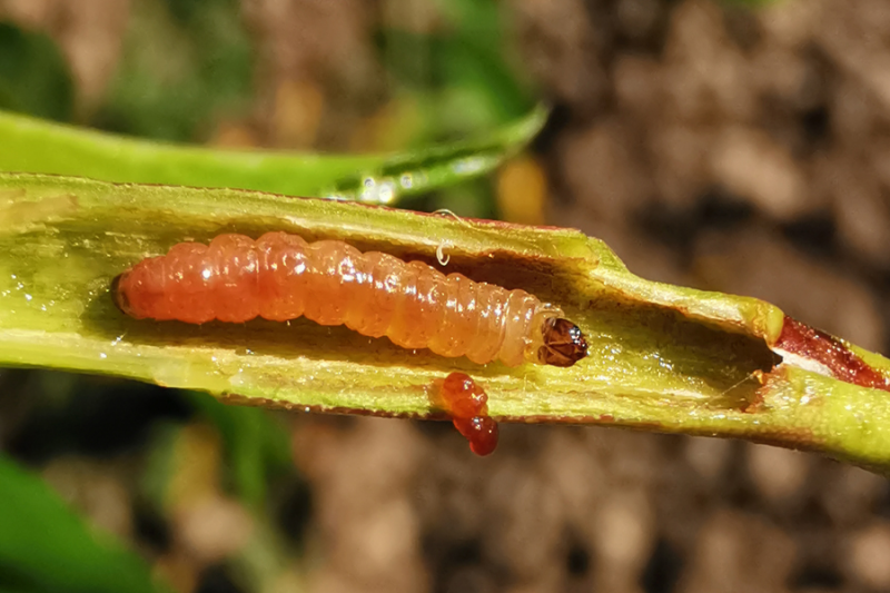 梨小食心蟲幼蟲為害桃梢(Roland ?tefanovi?攝)