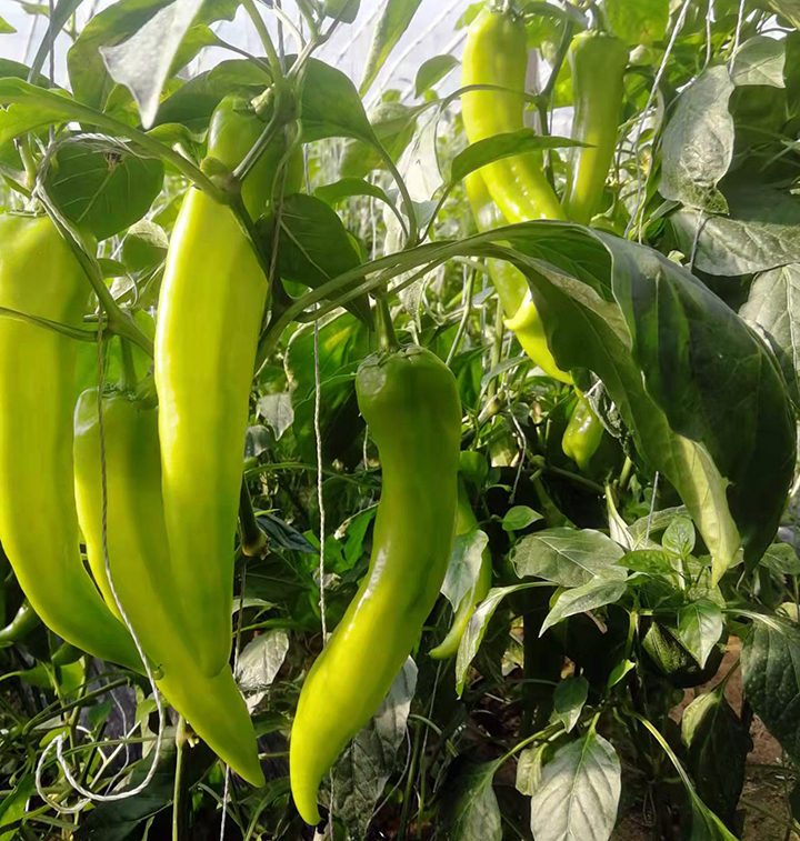 特性:淺綠皮辣椒為主,長(zhǎng)度20-35cm,單果重150-300克,顏色油亮,口感好