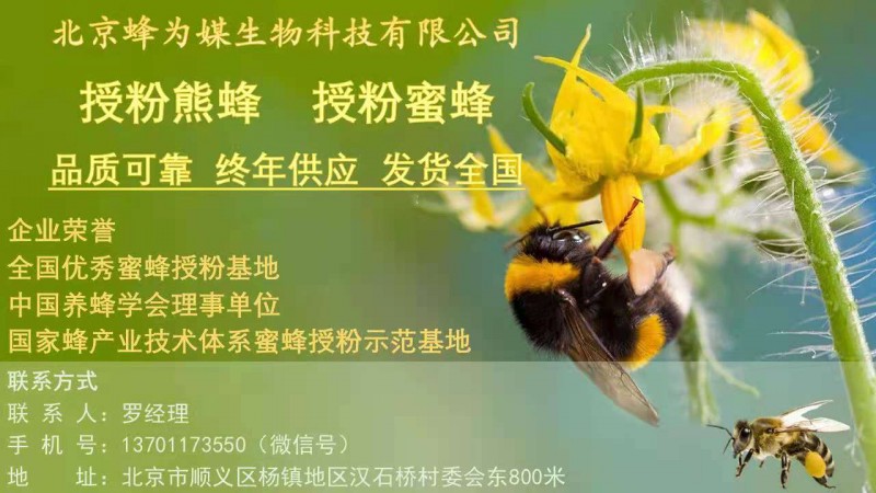 北京蜂為媒生物科技有限公司是一家集授粉昆蟲繁育、研發(fā)和銷售于一體的專業(yè)化蜂授粉企業(yè)。公司致力于為我國(guó)的種植業(yè)提供優(yōu)質(zhì)的授粉昆蟲產(chǎn)品和專業(yè)的授粉服務(wù),以旗下智能化授粉熊蜂繁育廠和北京農(nóng)之翼養(yǎng)蜂場(chǎng)為基礎(chǔ),年可向全國(guó)供應(yīng)授粉熊蜂5萬(wàn)箱,授粉蜜蜂8萬(wàn)箱,為草莓、茄果蔬菜、蔬菜制種及果樹等農(nóng)作物提供高效的授粉技術(shù)服務(wù),為現(xiàn)代農(nóng)業(yè)增產(chǎn)提質(zhì)、安全生產(chǎn)提供有效保障。公司作為國(guó)家蜂產(chǎn)業(yè)技術(shù)體系蜜蜂授粉示范基地,全國(guó)優(yōu)秀蜜蜂授粉基地,北京市農(nóng)林科學(xué)院授粉蜂繁育示范基地及中國(guó)養(yǎng)蜂學(xué)會(huì)理事單位,引領(lǐng)我國(guó)蜂授粉產(chǎn)業(yè)發(fā)展。