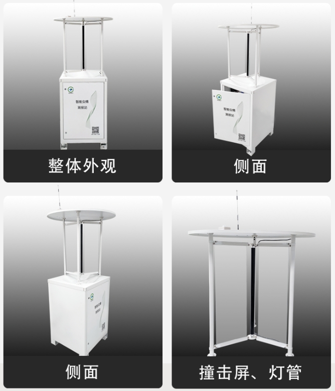 智能蟲情監(jiān)測(cè)站是新一代圖像識(shí)別式蟲情測(cè)報(bào)工具,利用現(xiàn)代光、電、數(shù)控技術(shù)及害蟲的趨光天性,對(duì)害蟲進(jìn)行誘殺,實(shí)現(xiàn)蟲體的收集和處理等功能,在無(wú)人監(jiān)管的情況下,能自動(dòng)完成誘蟲、殺蟲、蟲體分離、收集、拍照、識(shí)別、排水等作業(yè),并可自動(dòng)將蟲害數(shù)據(jù)傳輸?shù)奖O(jiān)控平臺(tái),對(duì)蟲害的發(fā)生、發(fā)展進(jìn)行監(jiān)測(cè)分析和預(yù)測(cè),以及蟲情發(fā)生概率的預(yù)報(bào)預(yù)警,為農(nóng)業(yè)綠色防控提供現(xiàn)代化監(jiān)測(cè)手段,可廣泛應(yīng)用于:大田、果園、茶山、林業(yè)、牧業(yè)等多種場(chǎng)景,實(shí)現(xiàn)了害蟲的誘集、分類統(tǒng)計(jì)、實(shí)時(shí)報(bào)傳、遠(yuǎn)程檢測(cè)、蟲害預(yù)警和防治指導(dǎo)的自動(dòng)化、智能化。