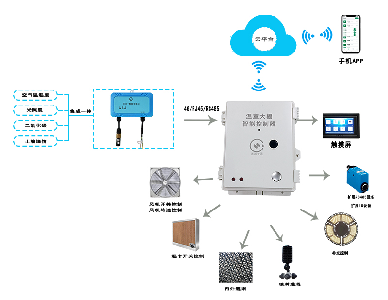 溫室大棚智能控制器遠(yuǎn)程手機(jī)APP控制,可廣泛應(yīng)用于溫室、育苗、育種花卉培育等對(duì)溫室大棚環(huán)境有嚴(yán)格控制需求的場(chǎng)地