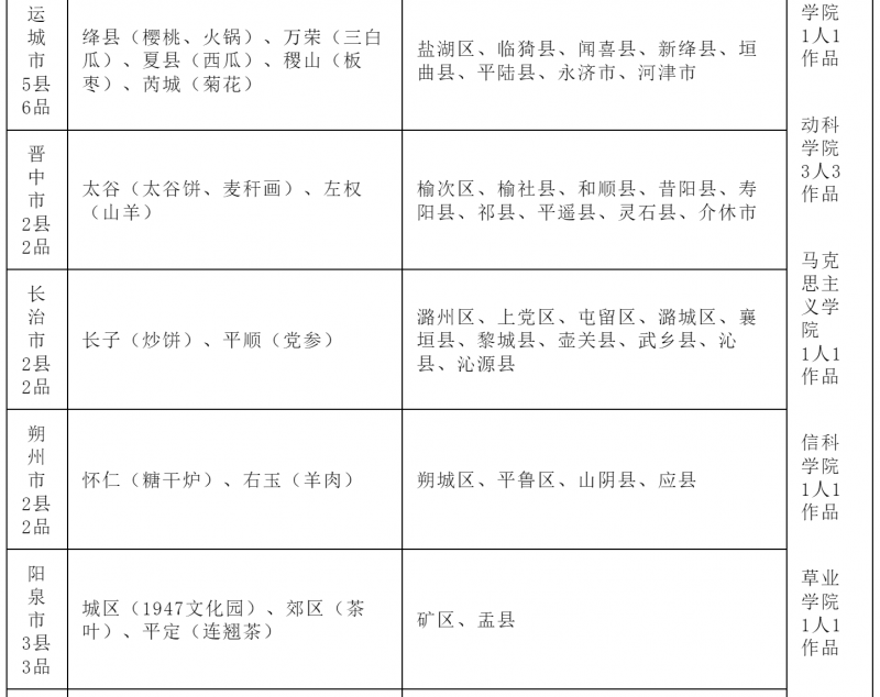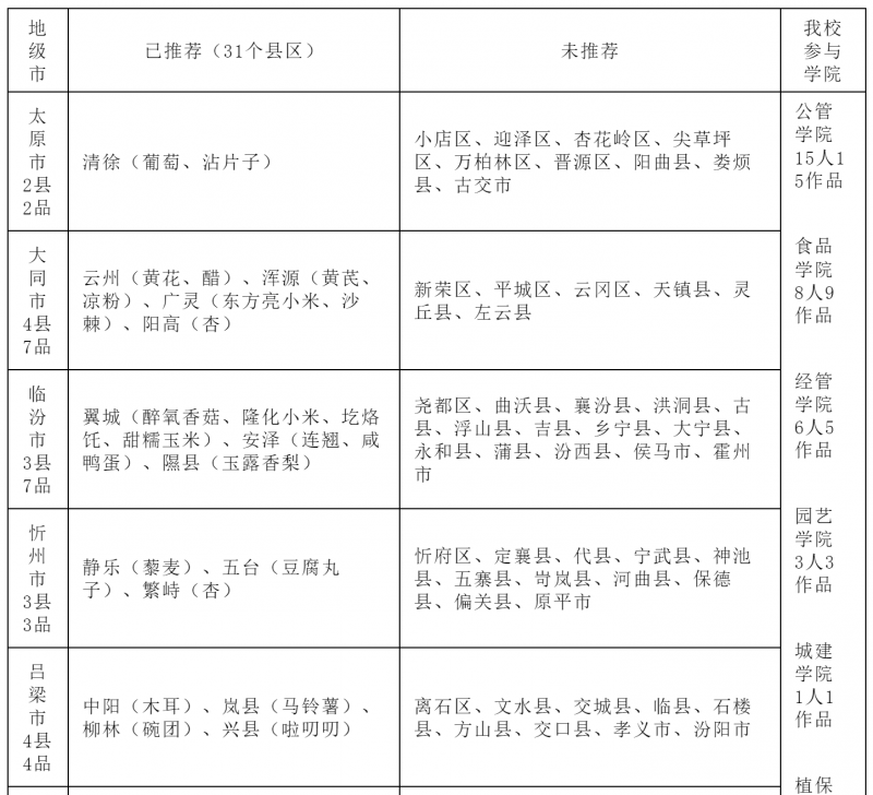 第1季的大學(xué)生推薦官活動(dòng),期待對山西11市117縣的特優(yōu)農(nóng)產(chǎn)品的推薦全覆蓋,目前已推薦31個(gè)縣(市、區(qū))的43個(gè)特優(yōu)農(nóng)產(chǎn)品,還有待更多青年力量、社會力量參與進(jìn)來,助力特優(yōu)農(nóng)產(chǎn)品高質(zhì)量發(fā)展,《特優(yōu)農(nóng)產(chǎn)品推薦已完成縣和待推薦縣概況》(見附件1)